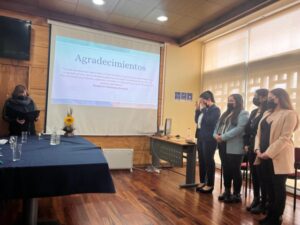 Ante la comisión evaluadora integrada por las académicas Andrea Castillo, Karen Cuevas, Ana María Méndez y Giselle Escarpentier, los estudiantes expusieron su tema durante 20 minutos, luego la comisión realizó las preguntas pertinentes, recibiendo, luego de unos minutos, la evaluación final.