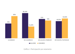 En este mes, agosto de 2022, el Consorcio de Universidades del Estado (CUECH) dio a conocer el diagnóstico Tendencias de Brechas en las 18 universidades del CUECH, que detalla el estado de las relaciones de género de sus entidades, con el objetivo de evidenciar la situación, reconocerla y corregirla. El estudio -al igual que los informes del CRUCH- confirma una sobrerrepresentación de hombres en los espacios de decisión estratégica y mayor presencia masculina en la cúspide de la carrera académica. Ejemplo de lo anterior es la conformación del cuerpo académico, con un 40% de mujeres versus un 60% de hombres.