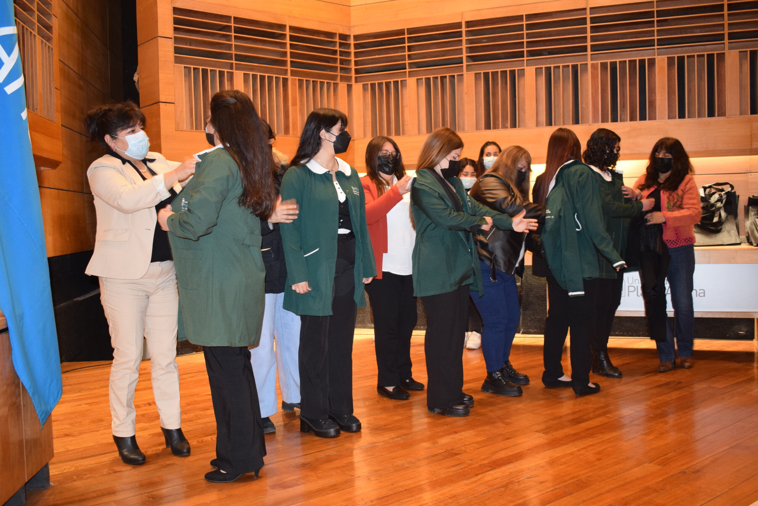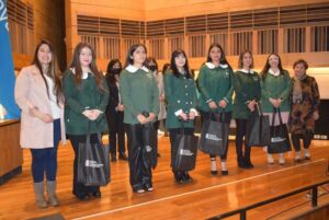 Las futuras educadoras recibieron la vestimenta que las ha de acompañar en su desempeño profesional de parte de sus emocionados padres, madres y/o familiares, además de la piocha institucional, en compañía de académicas de la carrera.