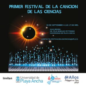 Las carreras de Pedagogía en Física y Pedagogía en Química y Ciencias de la Universidad de Playa Ancha se unen para organizar el “Primer Festival de la Canción de las Ciencias”, orientado a estudiantes de tercero y cuarto año medio de establecimientos educacionales de la región de Valparaíso.