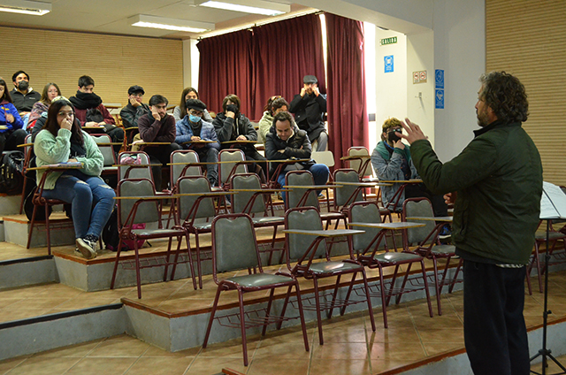 En la oportunidad el académico y jazzista nacional expuso la ponencia “Didáctica de la improvisación musical”, la que reforzó con ejemplos prácticos a través de la interpretación de un par de temas en el saxofón, instancia que le permitió compartir con las y los estudiantes como profesor experto en la didáctica musical, pero además como instrumentista.