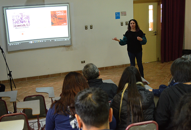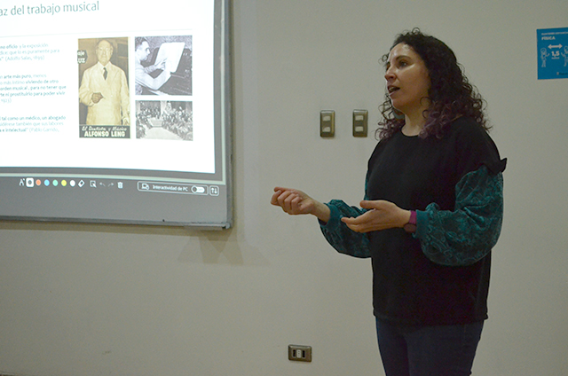“Música y trabajo, organizaciones gremiales de músicos en Chile, 1893-1940” se tituló la ponencia presentada por la musicóloga Eileen Karmy Bolton, actividad realizada en el contexto del ciclo de conciertos y charlas “Encuentros en torno a la Música” que se ejecuta semanalmente en el auditorio de la Facultad de Arte.