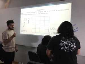 Siguiendo con las acciones de la estada en la UCN, de manera espontánea se estructuró un taller entre estudiantes de pedagogía y algunos de sus profesores de matemática y didáctica de la matemática. Cabe indicar que uno de los grupos de los estudiantes logró resolver los tres problemas que se plantearon, dando a conocer los procedimientos matemáticos, estrategias y argumentos.