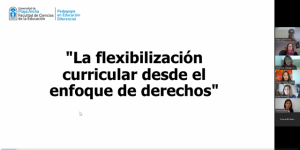 Conversar en torno a la presencia, participación y acceso a la educación en condiciones de equidad fue el objetivo del conversatorio “La flexibilización curricular desde el enfoque de derechos”, que realizó, vía zoom, el Departamento de Pedagogía de la Facultad de Ciencias de la Educación en conjunto con la carrera de Pedagogía en Educación Diferencial. El encuentro estuvo dirigido a los equipos directivos de los centros de práctica y a los profesores de las carreras de la facultad, que se encargan de supervisarlas.