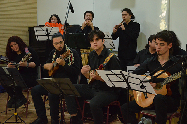 La agrupación de jóvenes músicos, compuesto en su mayoría por estudiantes y egresados (as) de Pedagogía en Educación Musical de nuestra universidad, interpretó un repertorio de música latinoamericana que incluyó temas de autores chilenos como “Ventolera” de Víctor Jara, “Si Te Vas” de Congreso, “Socoroma” de Arak Pacha y “Contraste” de Eduardo Carrasco; además de una adaptación de la pieza musical “Bolivia” realizada por Tradiciones Bolivianas.