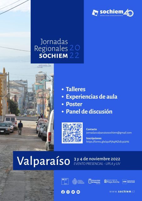 Después de 2 años, las Jornadas Regionales de Educación Matemática SOCHIEM volverán a realizarse de manera presencial en Valparaíso. El evento se llevará a cabo los días 3 y 4 de noviembre, siendo una de sus sedes la Facultad de Ciencias de la Educación de la Universidad de Playa Ancha (UPLA), donde se está invitando a participar a estudiantes, profesores del sistema escolar y académicos del área de las matemáticas como oyentes y como expositores.