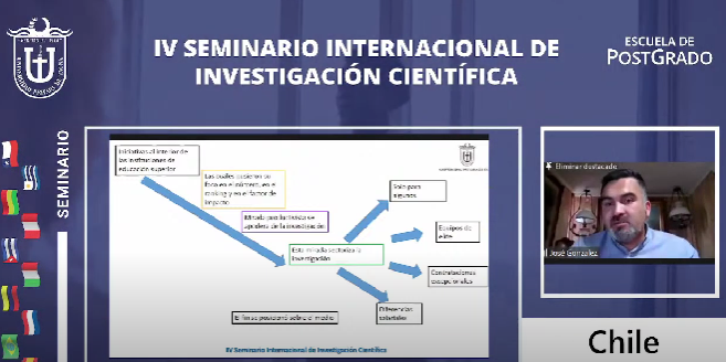 IV Seminario Internacional de Investigación Científica «Desarrollo de la investigación científica con impacto social», se denominó la actividad virtual organizada por la Escuela de Postgrado de la Universidad Privada de Tacna, Perú, en la que expuso el académico del Departamento de Matemática, Física y Estadística de la Universidad de Playa Ancha, Dr. José Alejandro González.