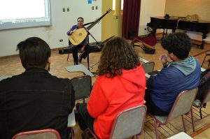 Una charla-concierto centrada en mostrar las características y repertorios de la guitarra barroca y la tiorba presentó el músico UPLA Daniel Díaz Cerda, todo en el contexto de los “Encuentros en torno a la Música” que se desarrolla cada viernes en el auditorio de la Facultad de Arte.