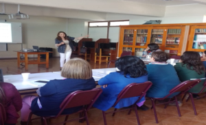 En su oportunidad 27 profesores y a solicitud del propio centro educativo, asistieron a esta capacitación que tuvo como grandes objetivos: analizar las funciones ejecutivas en el marco de la modificabilidad cognitiva estructural, identificar las principales funciones ejecutivas desde la mirada de las neurociencias y rutear el funcionamiento ejecutivo a través de la comprensión crítica de un texto multimodal, temáticas que fueron abordadas por la académica de la facultad Dra. Ivette Doll Castillo.