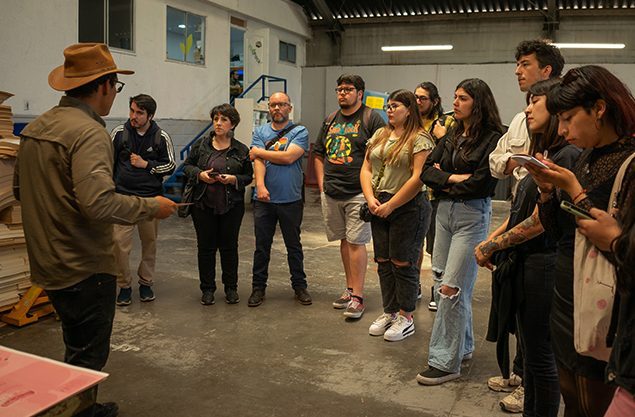 Además destacaron el aporte profesional del exestudiante de la carrera de Diseño Cristóbal Barría, quien quiso estar presente como parte de su proceso de formación profesional, acompañando y registrando la actividad de visita a la imprenta “Vive Pack” de Viña del Mar.