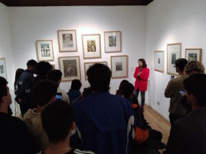 En este escenario propicio para la creatividad artística a través del grabado, los estudiantes de primer año de periodismo de la UPLA fueron partícipes de una visita guiada por todas las dependencias del museo, como parte de una actividad extracurricular de la asignatura Periodismo Informativo, a cargo de los docentes Miguel Chamorro y Eduardo Poblete. Los estudiantes pudieron conocer -en voz de la encargada de mediación, profesora María Paz Huenul-, el legado y obra de maestros del grabado, encabezados por Carlos Hermosilla, como también de destacados cultores de esta técnica, tales como Roser Bru, Nemesio Antúnez, Delia del Carril, Eduardo Vilches, Julio Escámez, Patricia Israel, Jorge Martínez, entre otros; todos, con alta relevancia tanto nacional como internacional.