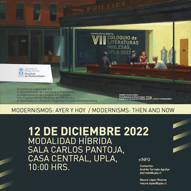 El próximo lunes 12 de diciembre se realizará en la sala Carlos Pantoja de la Casa Central de la Universidad de Playa Ancha, el VII Coloquio de Literaturas en Lengua Inglesa, Modernisms: Then and Now, en modalidad híbrida.