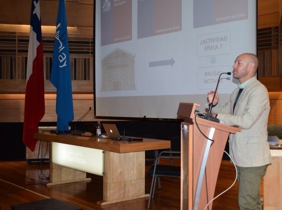 El Dr. En Educación Física y Deporte de la Universidad Lusófona, Portugal, y académico UPLA ,Tomás Reyes Amigo, dio cuenta de la línea de trabajo sobre innovación con actividad física en contexto escolar, mediante la aplicación de pausas activas a través de un proyecto de investigación con estudiantes de la universidad. En el área de innovación, Reyes dio cuenta de un posible prototipo de reloj inteligente de pausas activas que podría monitorear la frecuencia cardíaca durante la pausa, conteo de número de pasos, con una alarma de ejecución de pausa cada 45 minutos.