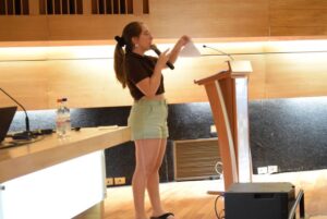 – “Más allá de la astronomía, estoy segura que la manera de acercar a la gente a las ciencias es exponiendo los eventos donde pueden despertar su curiosidad y entender sobre las problemáticas que se cuestionan en las distintas ciencias desde la astronomía y, en el caso de lo que yo presento, sobre planetas cómo se forman, dónde están, cómo los encontramos, si es que hay vida, y en otras ciencias en experiencias similares. Creo que, exponiendo a niñas, niños y jóvenes a situaciones donde pueden ver que existen estas ciencias podemos incentivar a que se motiven, para después ahondar más y cuestionarse, para finalmente quizás ellos se motiven a seguir una carrera científica”.