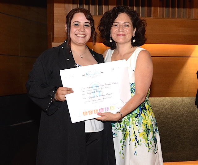 A la espera de los resultados de su postulación a la beca Conicyt para cursar el Magíster en Filosofía en la Universidad de Chile, se encuentra Samantha Fernández Martínez, quien recientemente recibió el premio a la Mejor Egresada en la carrera de Pedagogía en Filosofía de la Facultad de Humanidades.