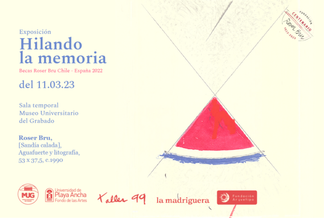 Además, explicó: «En agosto del año pasado emprendimos nuestro viaje a Santiago de Chile, las becas fueron una iniciativa de Paula Bonet, y fueron pensadas para rendirle homenaje a la obra y figura de nuestra querida y gran referente Roser Bru. 7 grabadoras españolas, junto a 7 chilenas nos juntamos para trabajar nuestra obra en el Taller 99, acompañadas de Paula Bonet, Isabel Cauas y Rafael Munita”.