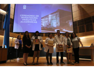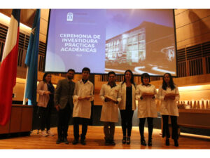 Posteriormente, los académicos Yasna Velasquez, Miguel Nuñez, Nicole Brown, Pedro Pacheco, Carolina Alburquenque y Lizka Muñoz le entregaron un obsequio al momento de investir a cada estudiante.