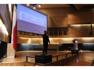 Una vez concluida la investidura se presentó en el escenario el profesor de Castellano Alen Inostroza Aravena, exestudiante de la carrera y cuentacuentista.