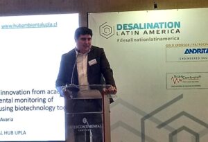 El Dr. Sáez destaca que “el HUB Ambiental fue la única contraparte académica en el evento”, marcando presencia en la sesión “Mejores prácticas para enfrentar los desafíos ambientales y sociales de la desalinización”, donde el académico y director del centro investigativo, brindó la presentación “Ciencias e innovación desde la academia para el monitoreo ambiental de desaladoras usando herramientas de la biotecnología”.