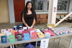 Javiera Aceituno, estudiante de primer año de Pedagogía en Educación Diferencial, afirmó que “fue una muy buena idea la instalación de la Feria de Emprendedores. Nos ayuda a promover lo que hacemos y, además, permite que nos conozcamos”. (Facebook Manualidades Nahuen)