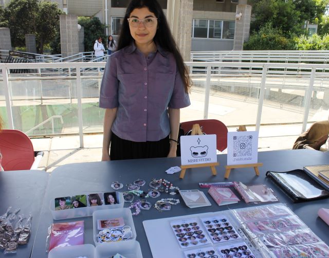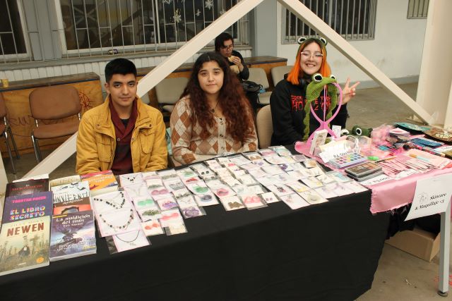 Valeska Mura, de Pedagogía en Castellano, se instaló con venta de maquillaje, skincare y gorros de lana. Su compañero Michel Ortuzar lo hizo con libros de diversos géneros, y Jenny Villarroel, de la misma carrera, ofreció aros, collares y accesorios que ella misma diseña. @soft_store._