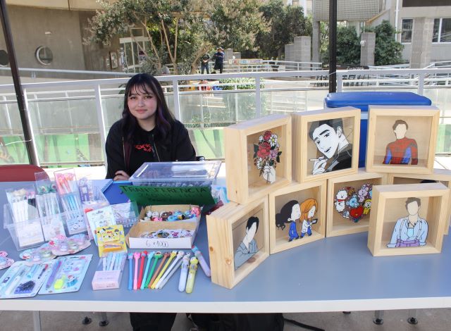 Javiera Aceituno, estudiante de primer año de Pedagogía en Educación Diferencial, afirmó que “fue una muy buena idea la instalación de la Feria de Emprendedores. Nos ayuda a promover lo que hacemos y, además, permite que nos conozcamos”. (Facebook Manualidades Nahuen)