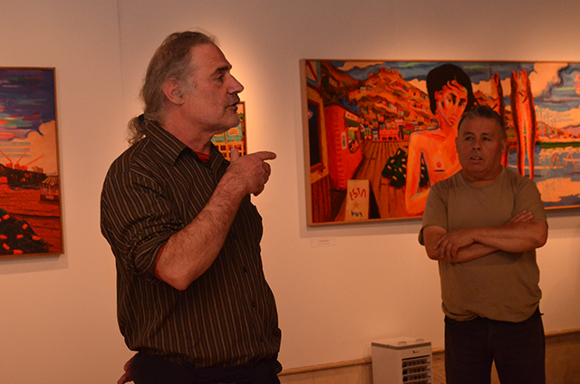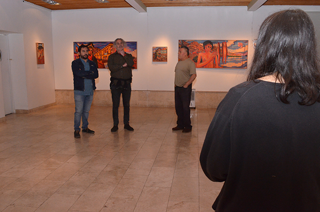 El diálogo entre el pintor y estudiantes se dio en la sala de exposiciones temporales del Museo Municipal de Bellas Artes de Valparaíso Palacio Baburizza, lugar donde el artista porteño hizo referencia a la creación de sus obras, técnica, inspiración y como interpreta la ciudad de Valparaíso en las decenas de piezas artísticas de gran formato que expone emulando el clásico formato cinematográfico del cinemascope.
