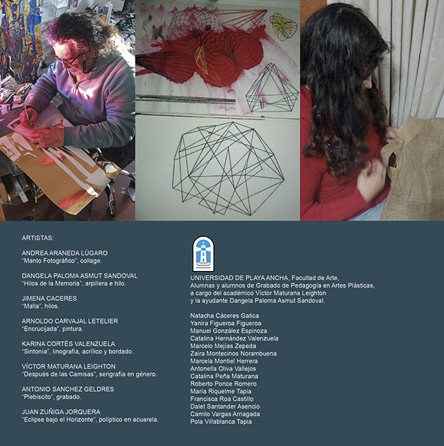 – Facultad de Arte UPLA representada por 15 estudiantes de Grabado de Pedagogía en Artes Plásticas, a cargo del académico Víctor Maturana Leighton y la ayudante Dangela Paloma Asmut Sandoval.