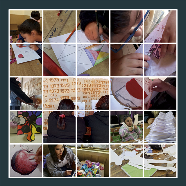 – Facultad de Arte UPLA representada por 15 estudiantes de Grabado de Pedagogía en Artes Plásticas, a cargo del académico Víctor Maturana Leighton y la ayudante Dangela Paloma Asmut Sandoval.