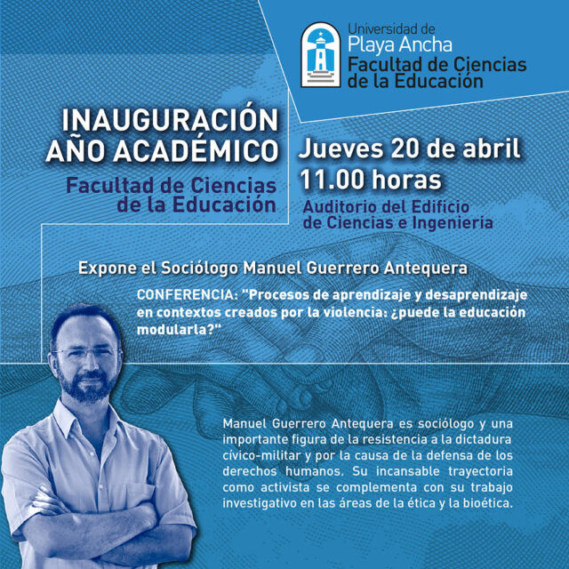 La actividad se realizará el jueves 20 de abril a las 11:00 horas en el Auditorio del Edificio de las Facultades de Ciencias Naturales e Ingeniería y contará con la participación de Manuel Guerrero Antequera, sociólogo, e hijo de Manuel Guerrero Ceballos, profesor y dirigente magisterial, una de las tres víctimas del Caso Degollados (1985).