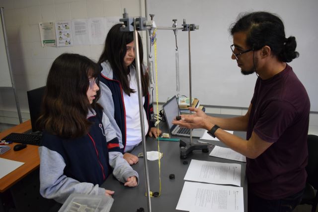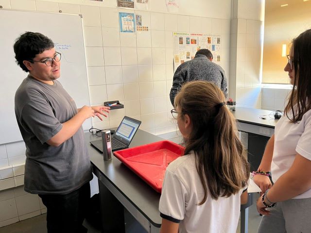 “La profesora nos solicitó que no fuera muestra, sino que pudieran medir (los escolares). Y eso hizo que se prepararan nuestros estudiantes, organizando actividades a nivel de séptimo básico. Los chicos están muy contentos, porque están viviendo y observando los errores que pueden cometer en las distintas mediciones. Están viendo algo de física estadística, un poquito de constantes, de salto de resorte”, sostuvo el profesor Carrasco.
