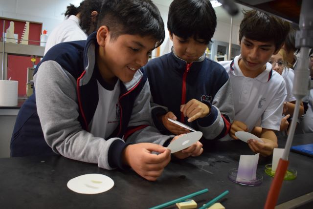 Los escolares con curiosidad experimentaron con tintes de verduras y midieron, entre otras cosas, la caída de objetos. “Es una oportunidad para que ellos aprendan a usar los datos, cómo se comportan los distintos fenómenos que estamos trabajando, como la fuerza. Ellos están aprendiendo a calcular la gravedad, el efecto que tiene la velocidad cuando caen los objetos y cómo se mueven los resortes. Y, en el laboratorio de Química están viendo cómo afectan la composición de los elementos en vegetales”, afirmó la profesora de Física del colegio Pan American, Cindy Azócar.