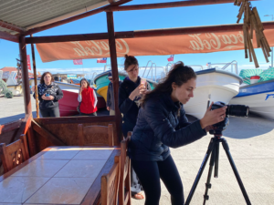 Catalina Guerra: «Nuestro viaje a Punta de Choros resultó una experiencia maravillosa. Por una parte, nos brindó la posibilidad de trabajar como equipo en el territorio, acercándonos a la actividad periodística profesional más seria. Por otro lado, nos permitió conocer a una comunidad resiliente, unida y absolutamente consciente de la importancia de proteger su tierra. Al menos para mí, la grabación de este documental me recordó una vez más la importancia de levantar los discursos sociales desde el territorio y por medio de las voces de los propios pobladores y pobladoras».