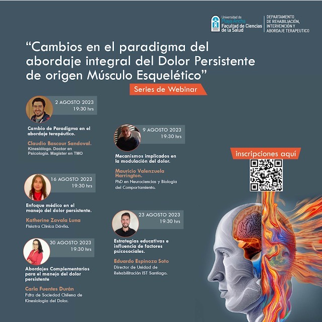 Cambios en el Paradigma del Abordaje integral del Dolor persistente de origen músculo esquelético, se denomina la serie de webinars que se realizará durante todo agosto y que reunirá a profesionales del área de la kinesiología.