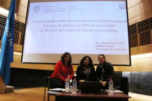 El evento tuvo como actividad central el conversatorio «La Universidad a 50 años del Golpe. Memoria, Ciencia y Feminismos», el que fue guiado por la Dra. Tania de Armas Pedraza de la Facultad de Ciencias Sociales, y donde participaron como ponencistas la Dra. Karina Ochoa Muñoz, socióloga de la Universidad Autónoma Metropolitana de Azcapotzalco y la Dra. en Estudios Americanos Alejandra Brito Peña, quien también integra el proyecto InES Género de la Universidad de Concepción.