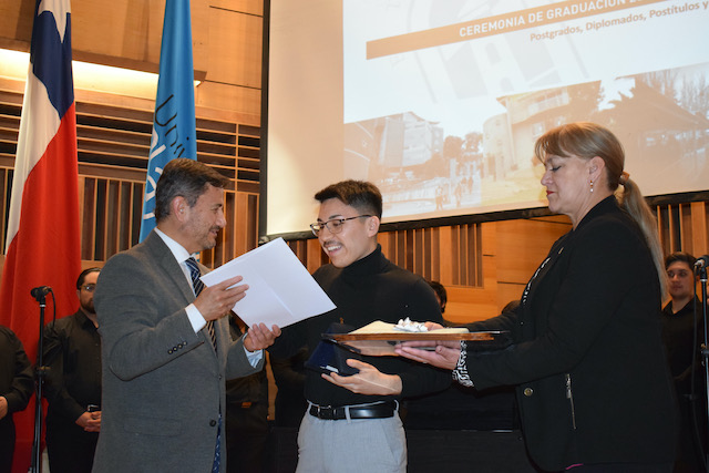 A nombre de los graduados y graduadas, en la primera ceremonia se dirigió a los presentes Lilian Salinas Herrera, del programa de Doctorado en Literatura Hispanoamericana Contemporánea quien, además recibió el reconocimiento por su perseverancia y responsabilidad que se otorga año a año por el buen desempeño profesional en los distintos programas que imparte nuestra casa de estudios. En la segunda ceremonia, se dirigieron a los presentes Carla Carvajal Jorquera y Tiara Rojas García, del programa de Magíster en Educación Inclusiva, esta última fue quien obtuvo el reconocimiento por su buen desempeño académico; mientras que en la tercera ceremonia, saludó a los presentes, Daniel Araneda Araneda, del programa Magíster en Lingüística con mención en Dialectología Hispanoamericana y Chilena, quien también fue quien obtuvo reconocimiento por sus altas calificaciones.