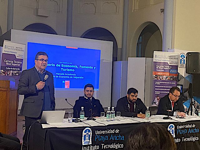 En la cita, los participantes abordaron distintos aspectos sobre la importancia y contribución que realizan las y los profesionales técnicos de nivel superior para el desarrollo local y regional. Presidió el encuentro el rector de la Universidad de Playa Ancha, Carlos González Morales, quien estuvo acompañado del Seremi de Economía Región de Valparaíso, Marcelo Arredondo; el director regional del Instituto de Seguridad Laboral, Maycol Gómez; y el director del Liceo Politécnico Alfredo Nazar Feres, Adolfo Precht.