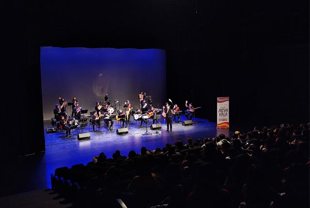 Durante la mañana, fueron cursos de enseñanza básica y media de cuatro establecimientos educacionales de Valparaíso, Viña del Mar, Quilpué y Villa Alemana los que participaron del concierto interactivo que tuvo como objetivo mostrar la puesta en escena de Abya Yala, pero también educar respecto a los instrumentos, sus usos, acordes y dirección del ensamble. Además, algunos de los integrantes del Ensamble, como Emilio Astorga, egresado de Pedagogía en Música UPLA, y Director del Ensamble Inicial de Abya Yala, son profesores de estos establecimientos.