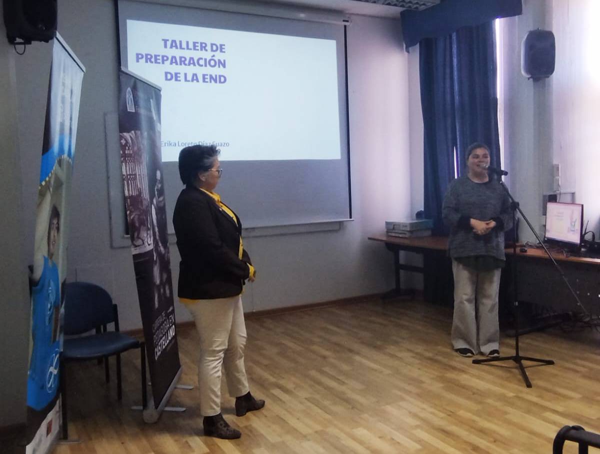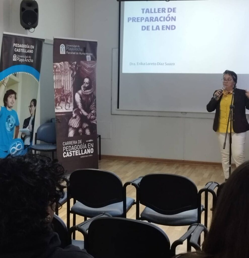 Con la exposición de la académica UPLA y docente avanzada del sistema escolar, Dra. Erika Díaz Suazo, se desarrolló el Taller END (Entendiendo Nociones Docentes) con la participación de 27 estudiantes de tercer y cuarto año de la carrera de Pedagogía en Castellano, sede Valparaíso y San Felipe, de la Universidad de Playa Ancha.
