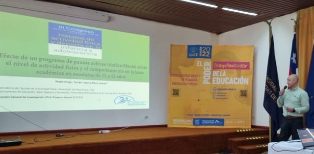 Entre los investigadores de diferentes casas de estudios del país que expusieron sus trabajos, el Dr. Tomás Reyes Amigo, de la Facultad de Ciencias de la Actividad Física y del Deporte de la Universidad de Playa Ancha, presentó la temática investigativa de los descansos activos en el contexto escolar.