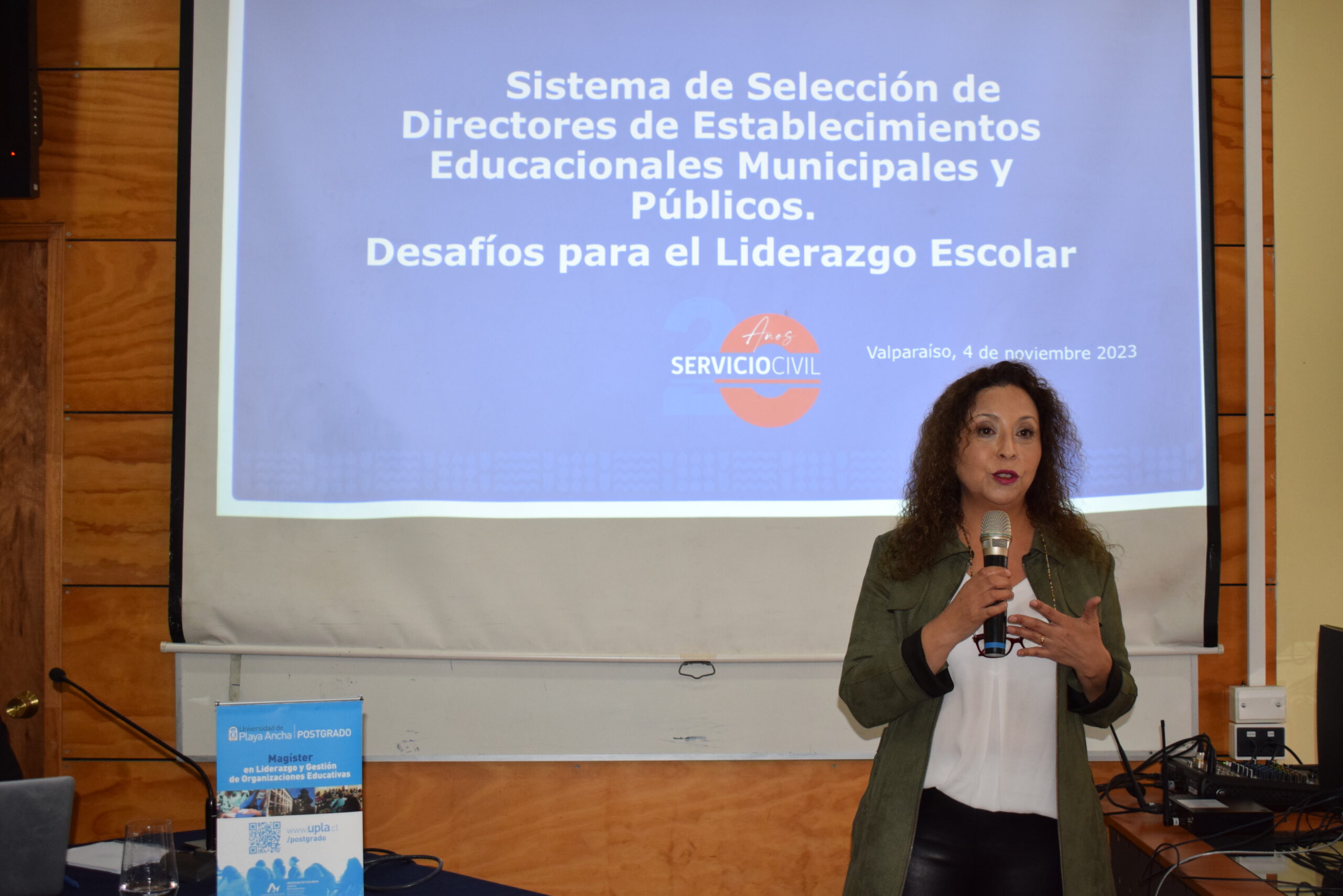 La Dra. Arévalo precisó que este primer seminario se realizó en torno a una de las temáticas clave del programa, que es el liderazgo directivo en educación, razón por la cual, participaron dos relevantes actores del sistema: un director de establecimientos educacionales elegido por Alta dirección Pública; y una representante del Servicio Civil, que es la unidad encargada de la elección de los directivos del sector público. A lo anterior se sumó un grupo de egresados que presentaron sus investigaciones en temas vinculados con el liderazgo directivo.