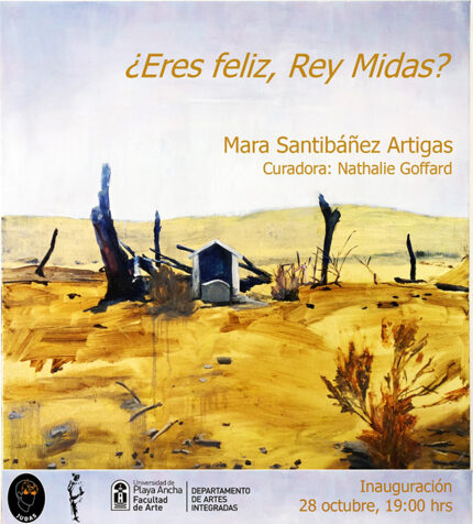 Hasta el viernes 1 de diciembre permanecerá expuesta en la Galería Judas (Pasaje Gálvez 167) de Valparaíso la exposición individual de Mara Santibáñez Artigas ¿Eres Feliz, Rey Midas?, muestra que agrupa una treintena de pinturas realizadas en el último tiempo por la artista y académica de la Facultad de Arte de la UPLA.
