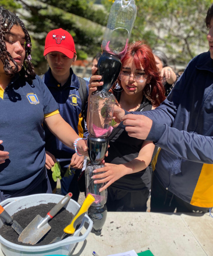 Tras ello, participaron en el primer taller de huertos verticales llevado a cabo por estudiantes ICA, para luego visitar el Laboratorio de Medio Ambiente, donde pudieron trabajar en la determinación de características físicas de suelos acompañados por profesionales que son parte del proyecto FIC-R apoyado por el Gobierno Regional.