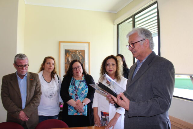 La Dra. Sarzoza asistió a su inscripción ante el secretario general (s), Manuel Chamorro, con sus respectivos académicos patrocinantes y una delegación de profesores y profesoras, quienes apoyan su candidatura.