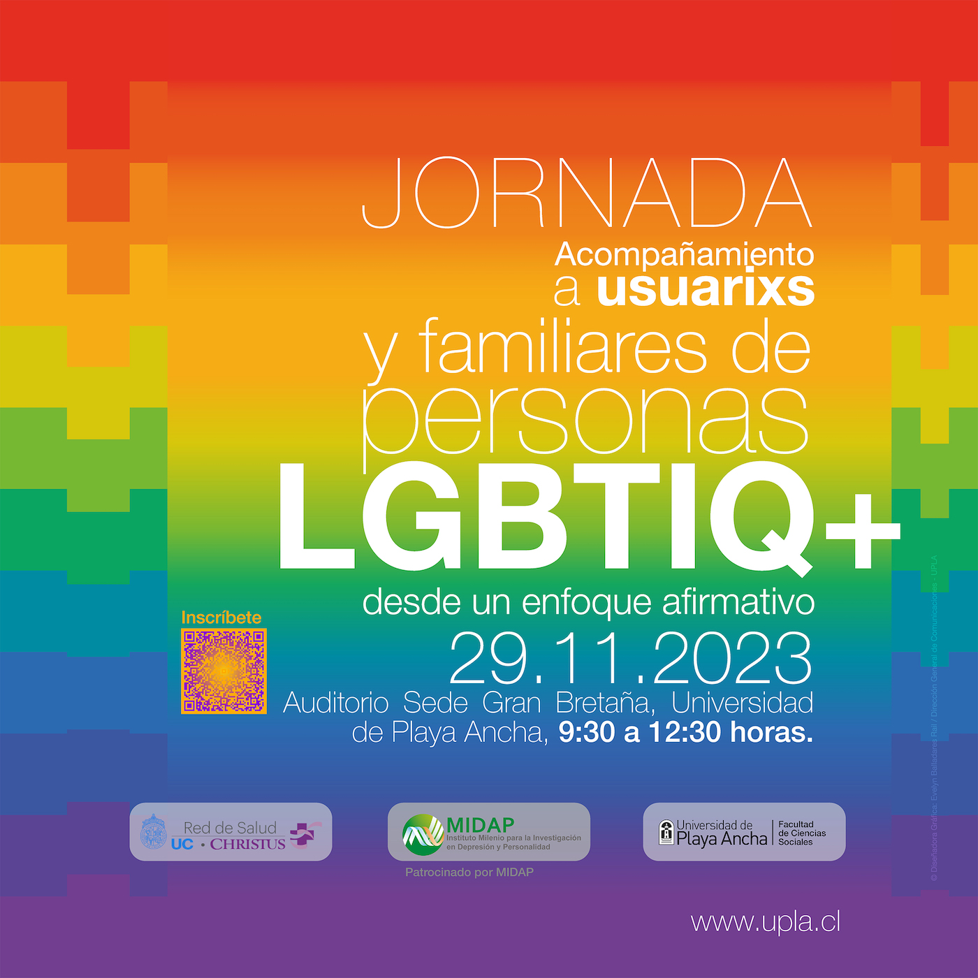 El Departamento de Mediaciones y Subjetividades de la Facultad de Ciencias Sociales de la Universidad de Playa Ancha, en conjunto al Instituto Milenio para la Investigación en Depresión y Personalidad y la Red de Salud-UC Christus, desarrollará la “Jornada de Acompañamiento a usuarixs y familiares de personas LGBTIQ+, desde un enfoque afirmativo”.