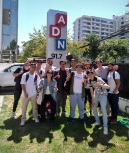 En el marco del programa de la asignatura Seminario Complementario de Comunicación Social Deportes II, impartido por el docente Eduardo Poblete, las y los estudiantes adscritos a esta asignatura de quinto año de la carrera de Periodismo de la Universidad de Playa Ancha, visitaron las dependencias de ADN Radio ubicadas en la comuna de Providencia en Santiago, con la finalidad de conocer a fondo un medio de comunicación hegemónico en el espectro radial nacional y, de paso, ahondar en el éxito del programa especializado en periodismo deportivo, “Los Tenores”, líder en sintonía a lo largo del país.
