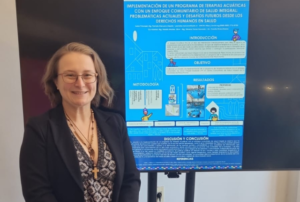 Y por último, la académica de la carrera de Kinesiología, Dra. Pamela Marcone, expuso su ponencia sobre “Implementación de un programa de Terapias Acuáticas con un enfoque comunitario de salud integral: problemáticas actuales y desafíos futuros desde los derechos humanos en salud”, que rescató las experiencias del Centro en rehabilitación acuática y la complejidad de su acceso para las comunidades territoriales.