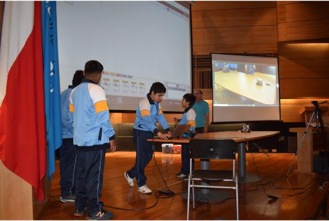 Dirigidos por el profesor de matemática del establecimiento, Rodrigo Maureira, los escolares llegaron al Aula Dr. Félix Morales de la Upla acompañados de sus padres, madres y apoderados para demostrar los conocimientos adquiridos en el taller de Robótica.