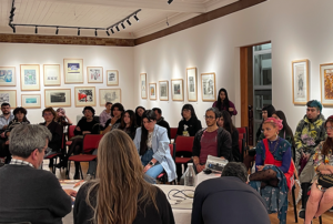 En la jornada se abordó la exposición temporal “Ejercicios de memoria” realizada en el marco de la conmemoración de los 50 años del golpe de Estado. “El conversatorio es una muy buena instancia para que se acerquen todas las generaciones, gente que a veces no tiene acceso y no está relacionada con el arte pueda venir, ver, aprender y entrar un poco en la cabeza de los artistas, de hablar de las técnicas, historia de cada uno y el relato que hay detrás de cada obra”, mencionó Guillermina Antúnez.