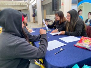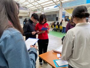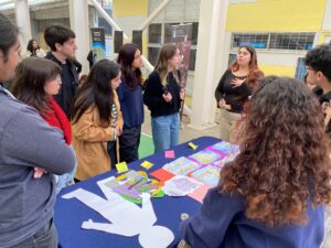 Fue así como los y las jóvenes se pusieron a disposición de los universitarios para visitar cinco estaciones de trabajo, dentro de un circuito, que consideraba distintas dinámicas que buscaban analizar los poemas del texto.